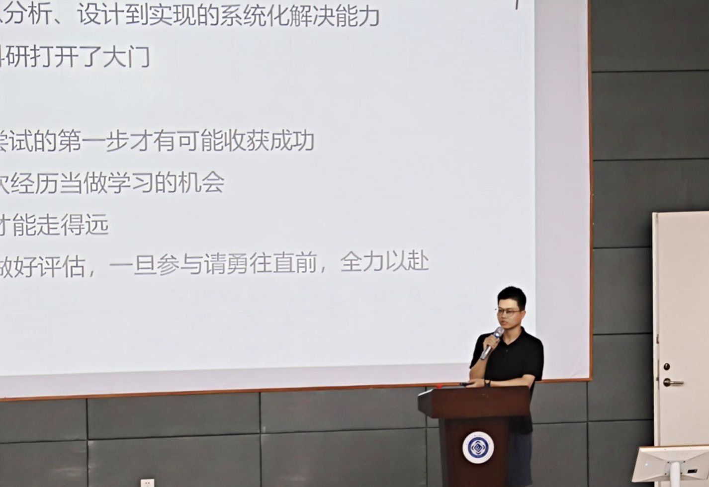 图十 新生代表张广宇同学发言分享个人入学心得和学习目标