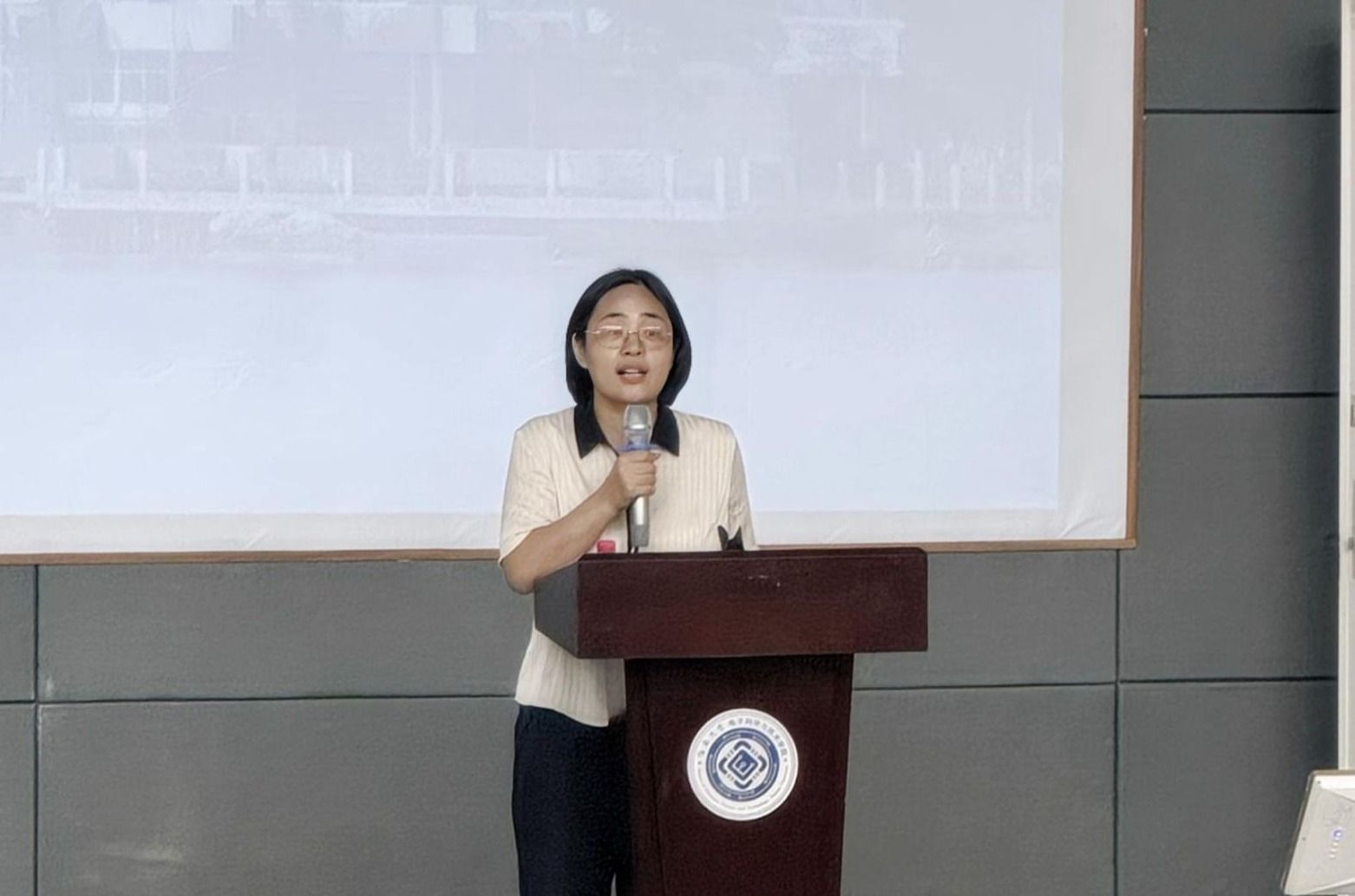 图七 教师代表王微微教授分享个人做科研及创新学习心得