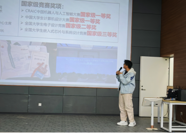 随后,简明朝老师结合学院学科特色,梳理并介绍了适合电子科学与技术学院学生参与的各类竞赛项目,重点涵盖电子信息类学科竞赛、创新创业类竞赛等核心类别,系统分析了不同竞赛的定位特点与能力要求,为同学们科学选择竞赛方向、合理规划参赛路径提供了清晰指引。