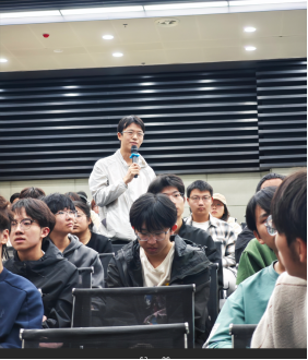 会议尾声,同学们围绕竞赛备赛过程中的重点与难点问题积极提问,与在场教师展开深入交流,现场互动氛围热烈。针对同学们普遍关注的人工智能基础知识学习路径问题,姜亚龙老师结合具体项目需求,建议同学们以解决实际功能问题为导向,在实践中逐步完善知识体系,并在此基础上有针对性地深入学习相关编程语言与工具框架。围绕无线传播与智慧感知方向,何政老师从工程应用实际出发,提出应优先明确应用场景与系统需求,在此基础上再聚焦关键技术与算法实现。